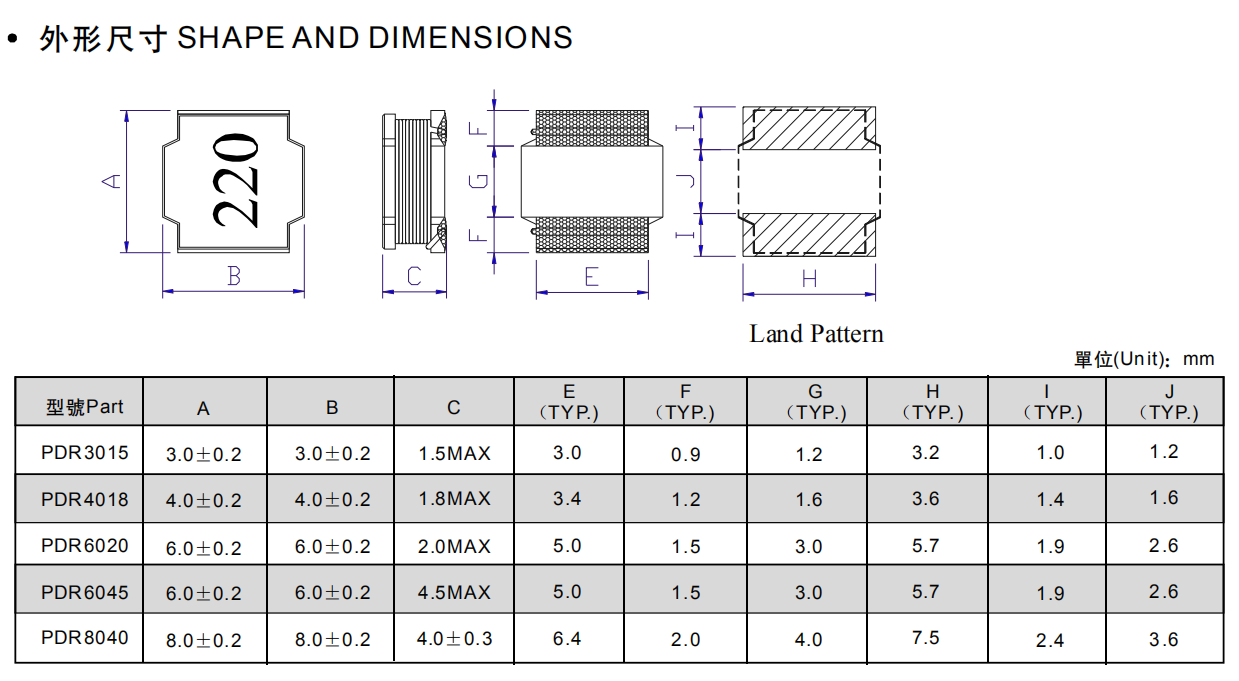 如下圖所示:PDR系列貼片屏蔽電感和GNR系列貼片屏蔽電感的外形尺寸幾乎沒有差別,谷景電子的GNR系列貼片屏蔽電感不僅囊括了風(fēng)華高科PDR系列的5種型號,還有12種型號可以供客戶選擇,如果這些還不能滿足客戶的要求,谷景還可以提供定制服務(wù)。